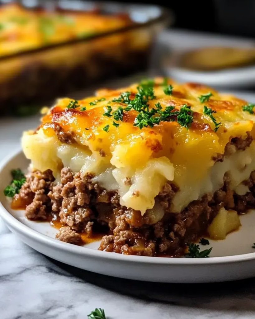 To enhance the flavor, experiment with different types of cheese, such as smoked gouda or pepper jack. You can also try adding caramelized onions to the mashed potatoes for a sweeter twist, or replace the ground meat with sausage for a spicier, more robust flavor. Baking the casserole in a cast-iron skillet adds a rustic touch and helps retain heat for longer serving times.FAQs