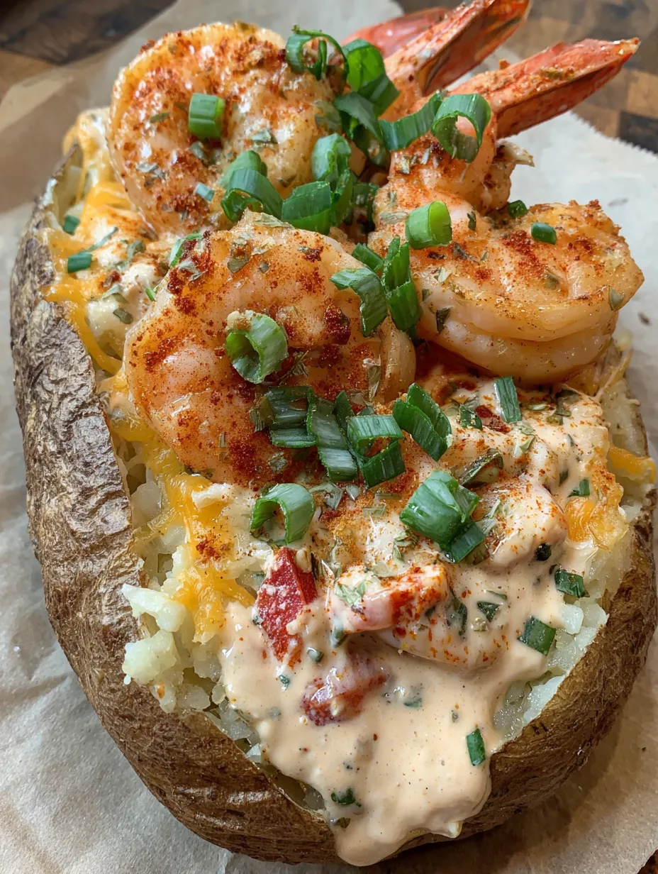 - This recipe transforms a simple baked potato into an elegant seafood feast perfect for special occasions.