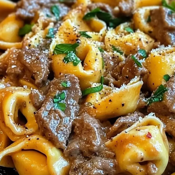 Philly Cheesesteak Tortellini Pasta is the ultimate fusion dish, combining the beloved flavors of Philly cheesesteak with creamy tortellini pasta. This recipe is simple yet packed with flavor, making it an excellent choice for those who want a hearty, comforting dinner without spending hours in the kitchen. The steak, onions, and bell peppers add savory depth, while the creamy beef broth sauce and melted provolone bring everything together in a cheesy embrace. Whether you’re feeding a family or just looking for a quick weeknight meal, this pasta dish is a must-try.